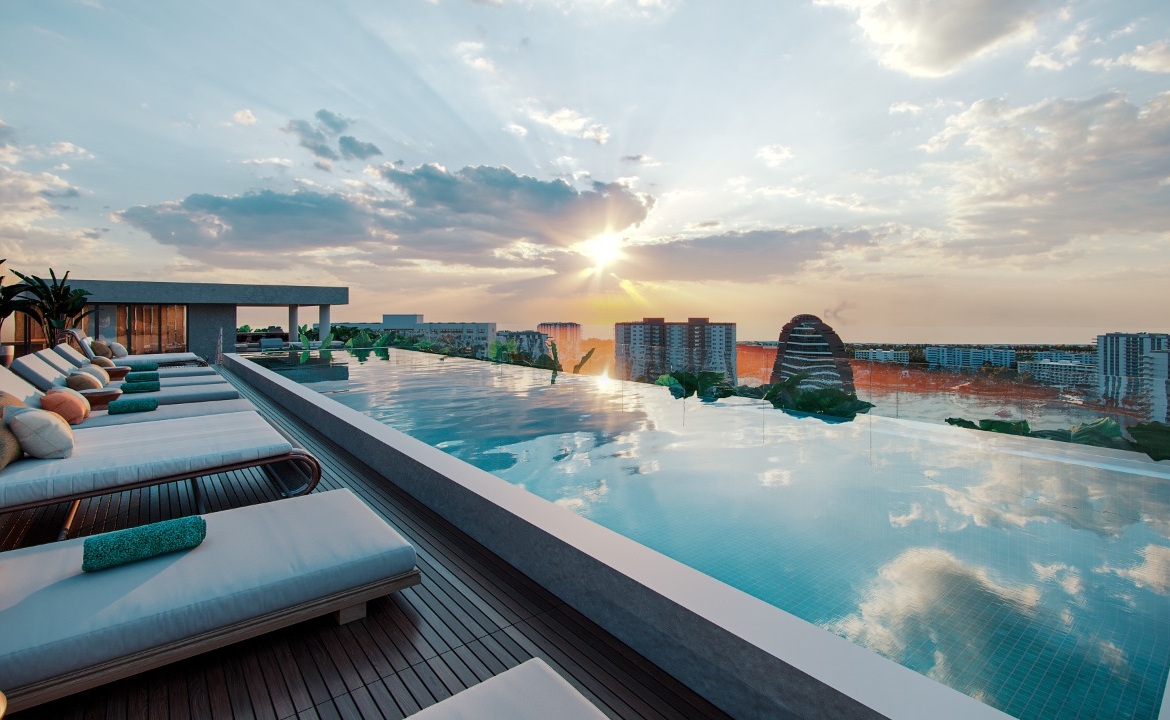 amenidades premium como spa, albercas, canchas de tenis, canchas de paddle, gimnasio indoor y outdoor, sky kitchen, sky pool y sky bar, entre otras. Un proyecto bien planeado, con atención a los detalles, que busca cambiar las actividades rutinarias por experiencias de calidad.
